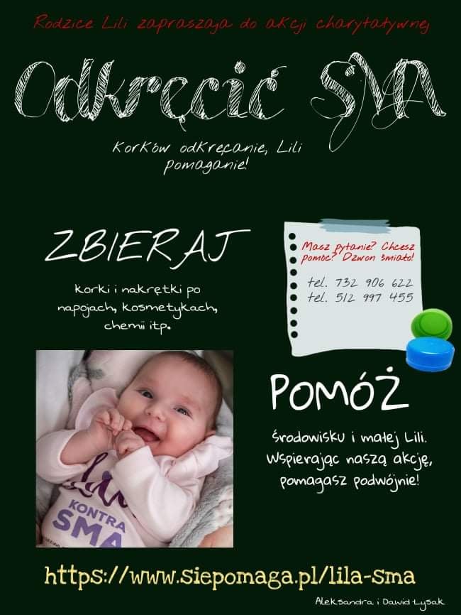 Od drugiego półrocza zebrane plastikowe nakrętki pomogą małej Liliance z Biskupca. Zachęcamy do aktywnego włączenia się do akcji.