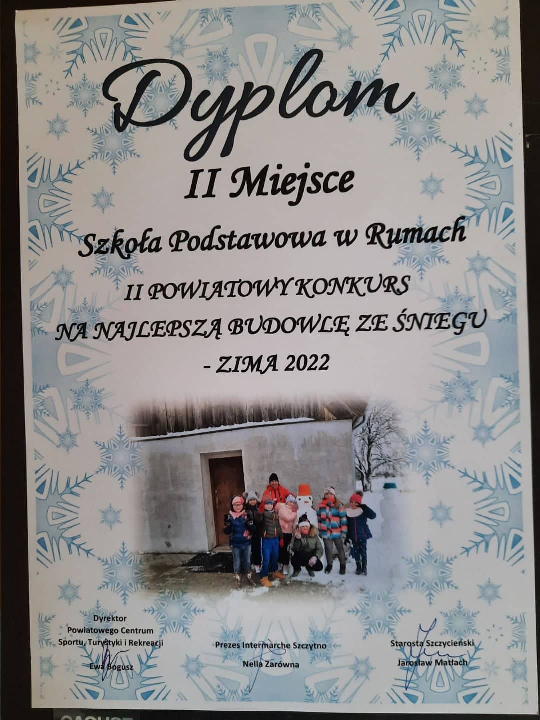 Powiatowy Konkurs Na Najlepszą Budowlę Ze Śniegu rozstrzygnięty Uczniowie klasy II i III zdobyli II miejsce w Powiatowym Konkursie Na Najlepszą Budowlę Ze Śniegu. Gratulujemy!!! poprz. nast.