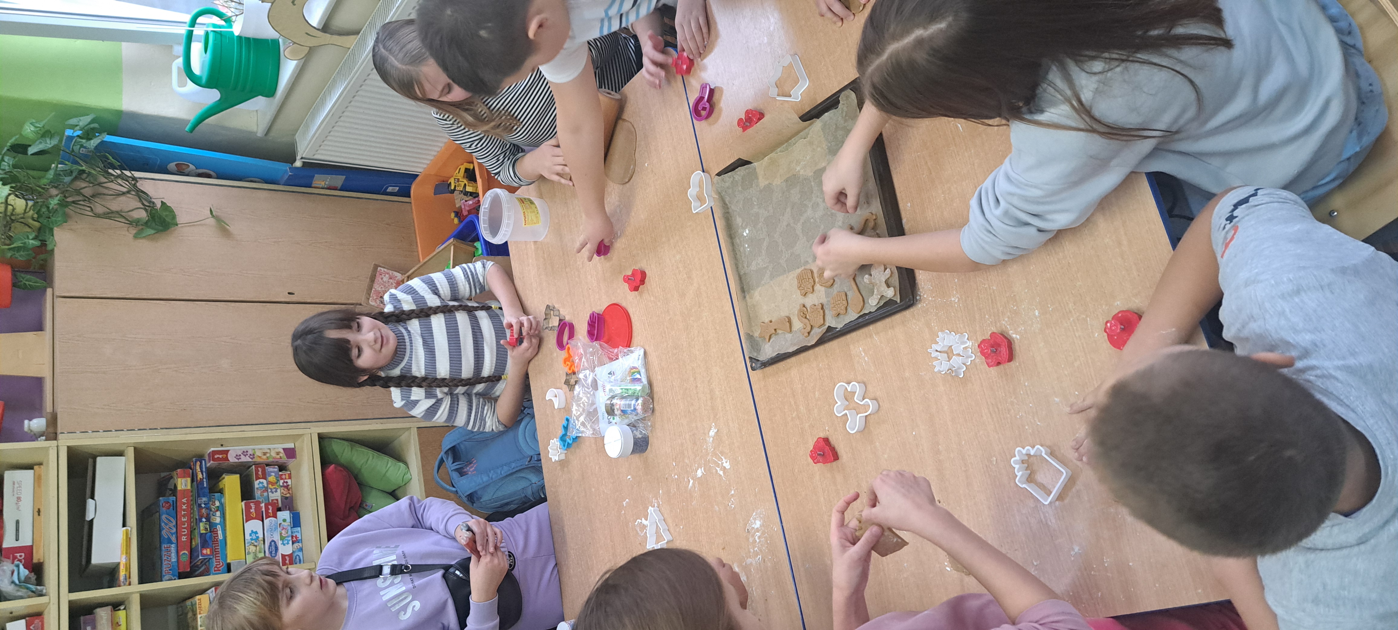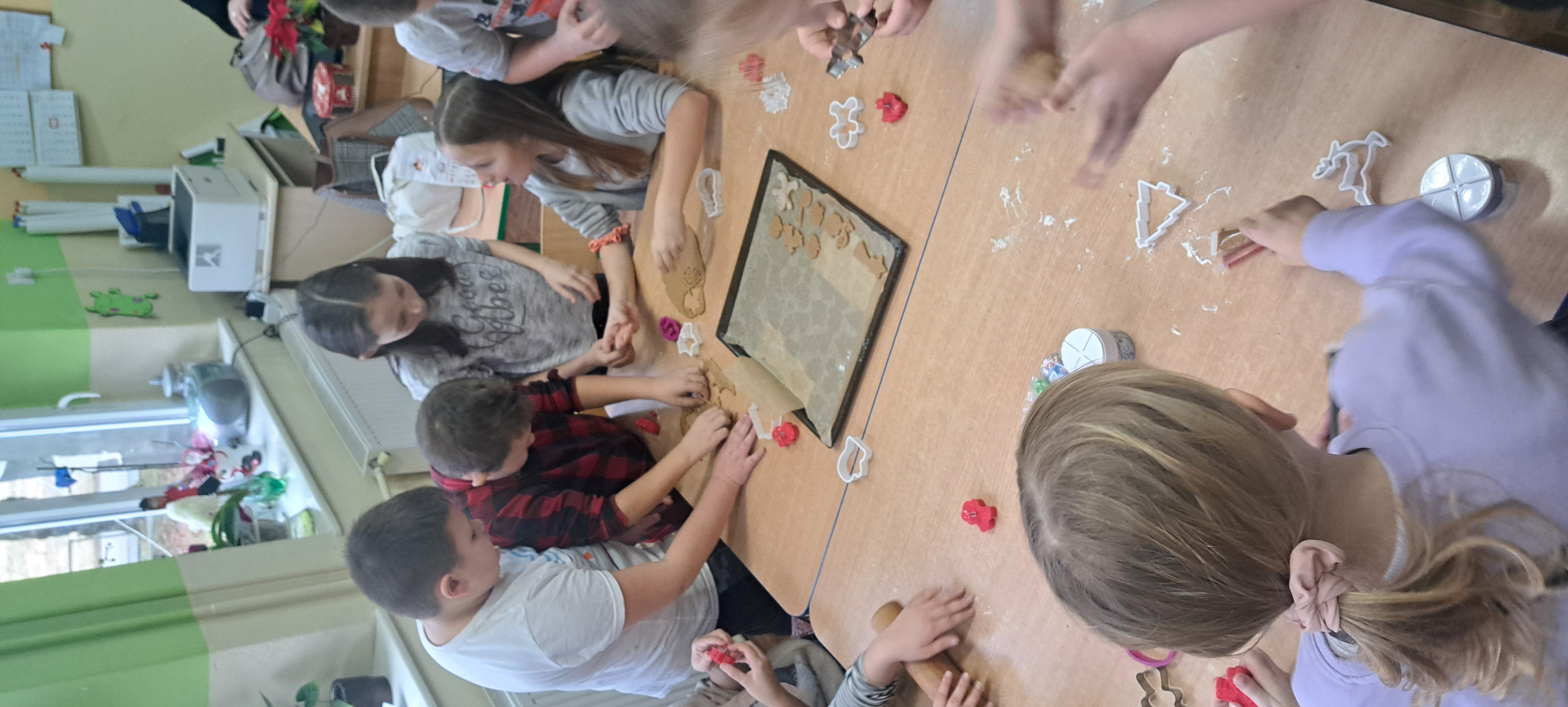5 grudnia 2024 roku w naszej szkole zapachniało świętami. Uczniowie klasy 4 i 5 w ramach zajęć rozwijających zainteresowania z języka niemieckiego piekli pierniczki. W miłej i nieco gwarnej atmosferze uczniowie przygotowali ciasto na pierniki, poznając przy tym słownictwo dotyczące przygotowania i wyrabiania ciasta po niemiecku. Tej kulinarnej zabawie towarzyszyły w tle pastorałki i kolędy również w języku niemieckim. po ostygnięciu pierników wszyscy zabrali się za dekorowanie. Efekty pracy wszyscy uczniowie, rodzice i nauczyciele będą mogli zobaczyć i posmakować podczas szkolnej Wigilii.