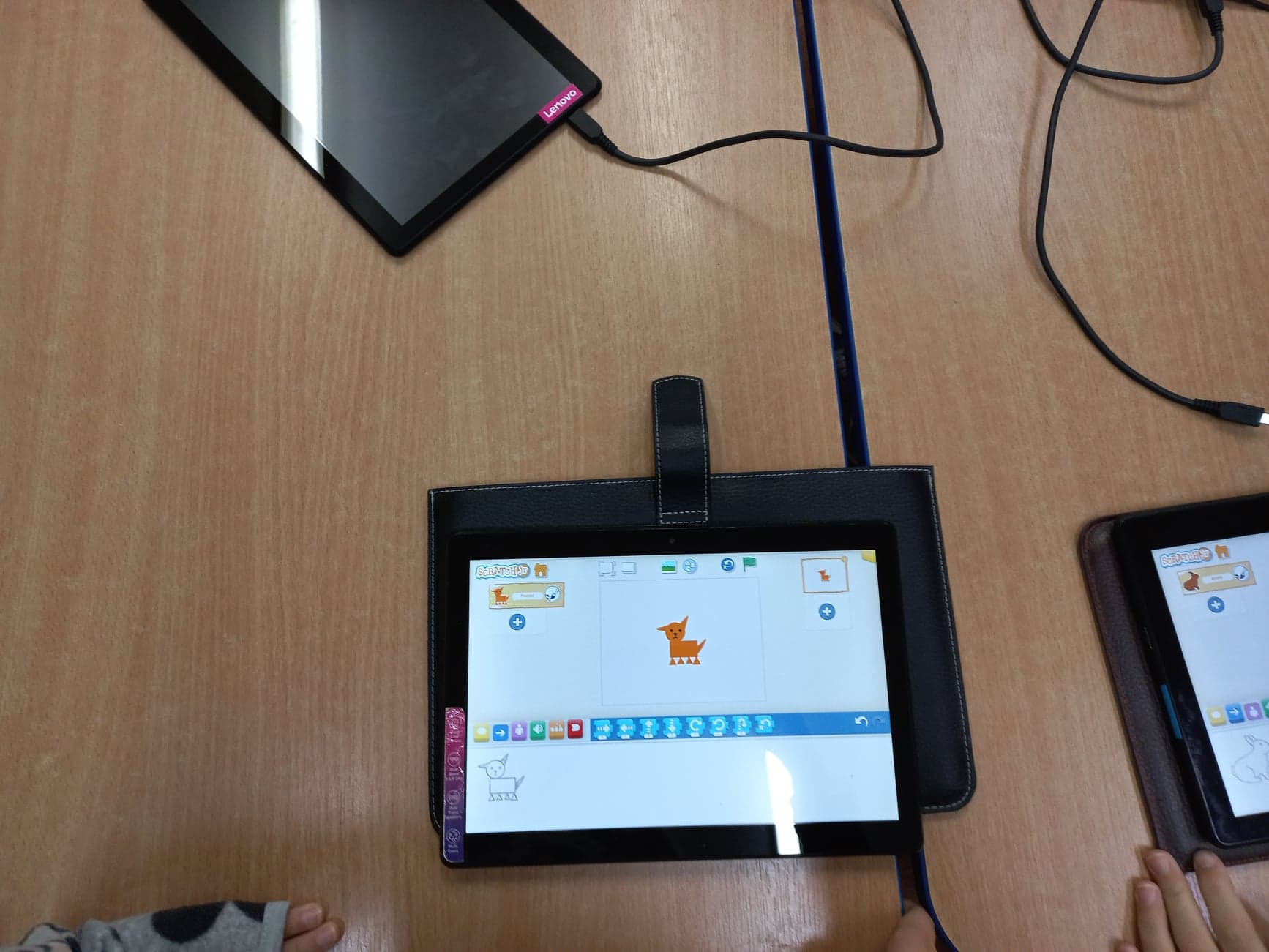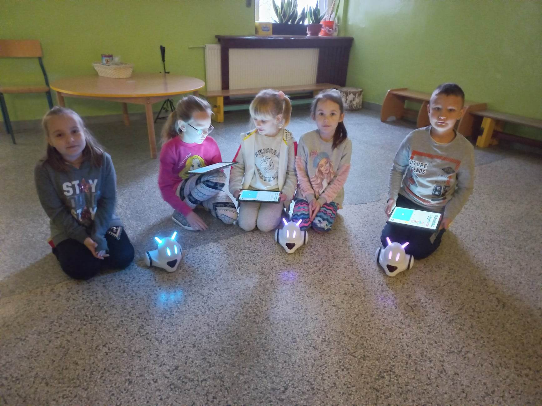 W ramach zajęć ze sprzętem zakupionym w ramach programu Laboratoria przyszłości najmłodsi uczniowie (klasa 1 i 2) podczas zajęć rozwijających zainteresowania rozpoczęli przygodę z programowaniem. uczniowie uczą się programowania w Scratch Junior. Pozwoli im to zaprogramować otrzymane roboty edukacyjne Photon.